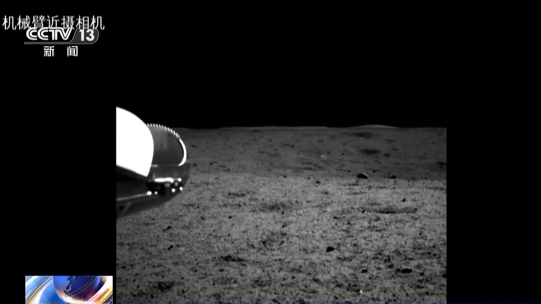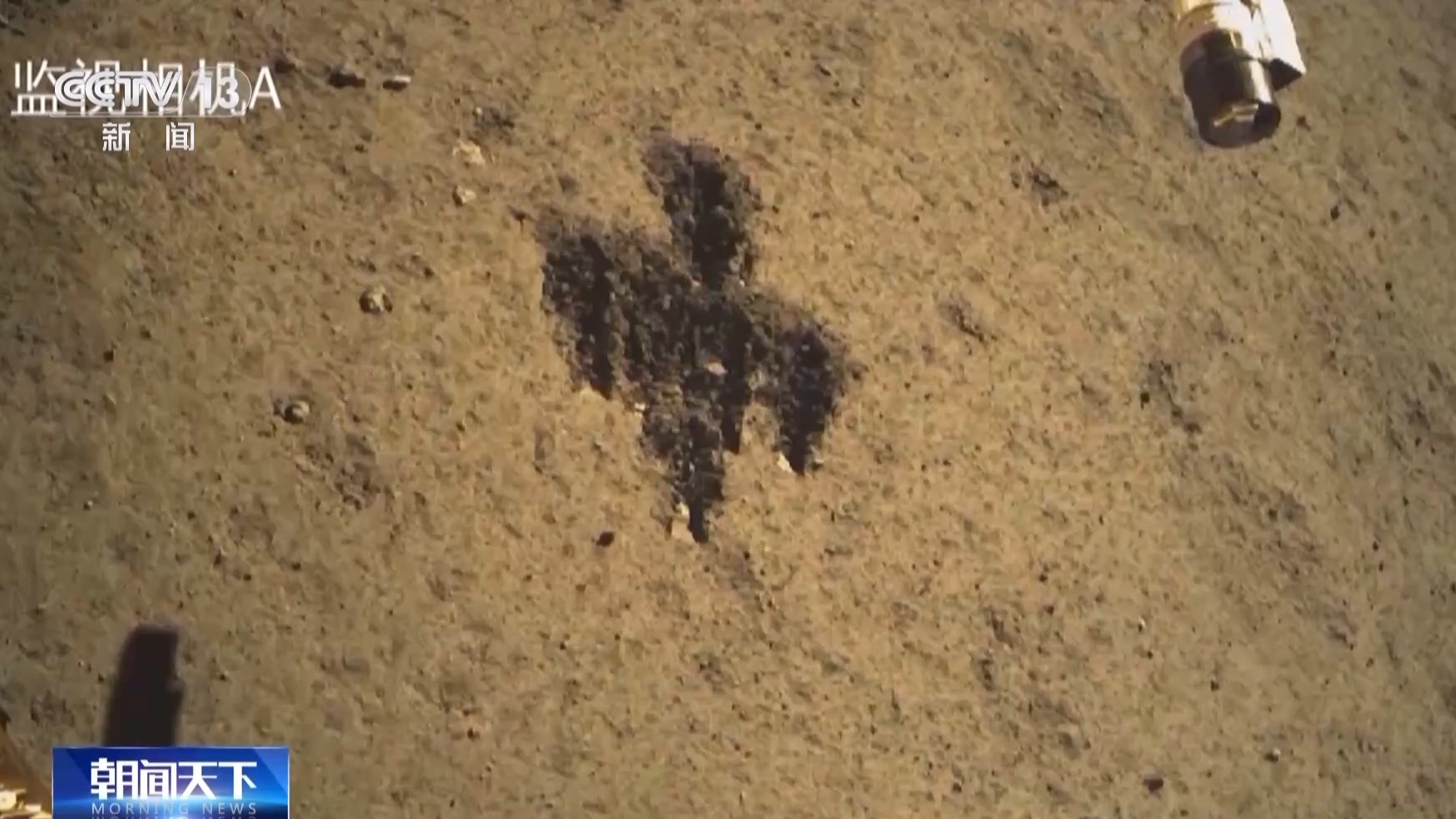 中国航天科技集团 贾晓宇:最开始选采样点只是根据表面看到的图形选出来的,铲挖的时候再翻出一些新的感兴趣的样品来,然后我们会根据翻出来的样品来动态调整我们采样点的位置,“中”字的斜的收笔和“中”字的头部其实就是这样产生的。本来我们可能除了“中”字之外还会多铲几铲,但是最后发现“中”字的最后一笔形成以后,正好这个样品容器也几乎要满了。各种意外催成了一个“中”字的产生,可能是注定中国要在月球上留下自己的印记。