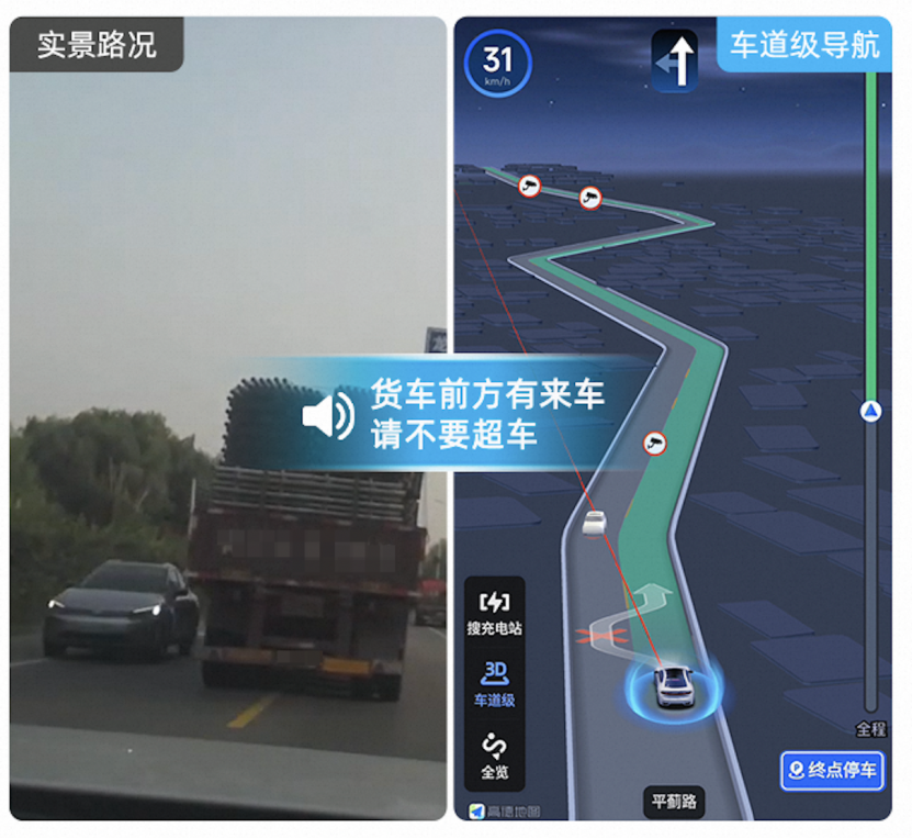 本次升级后,高德地图车道级安全预警功能实现了全方位、超视距守护用户行车安全。