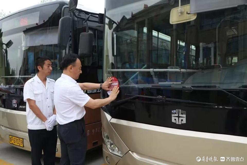 参会领导为公交车辆贴上“爱心助考”标识,聊城公交在高考期间服务广大考生,以实际行动为高考学子保驾护航。