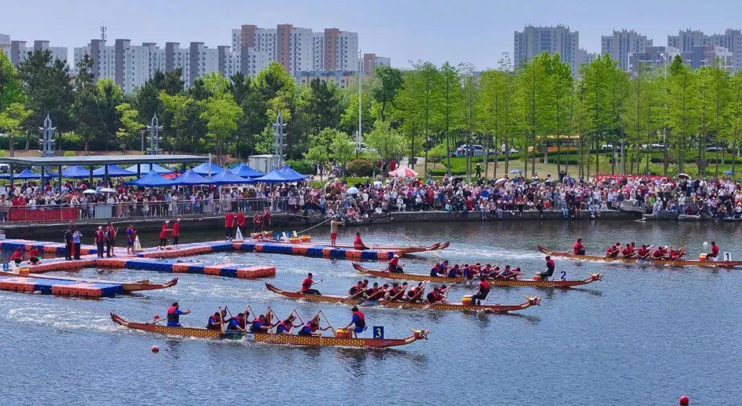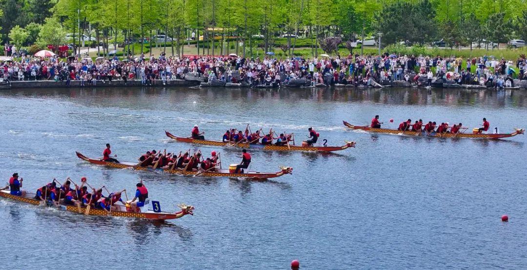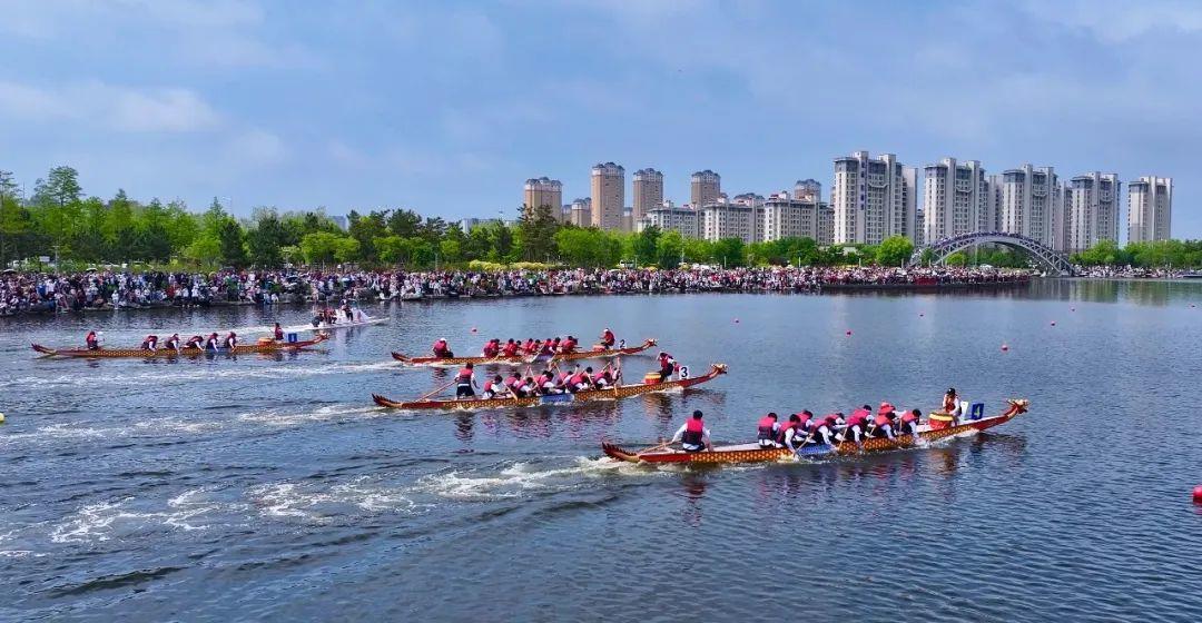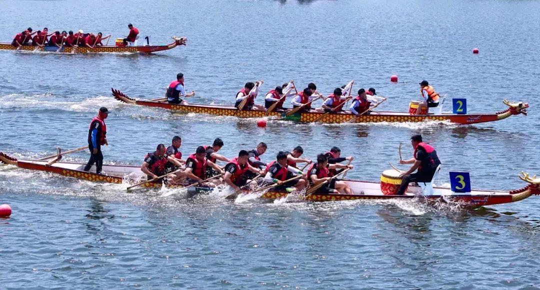 6月8日上午9点,南海新区第十届龙舟赛在蓝湖公园擂鼓开赛、挥桨竞渡。