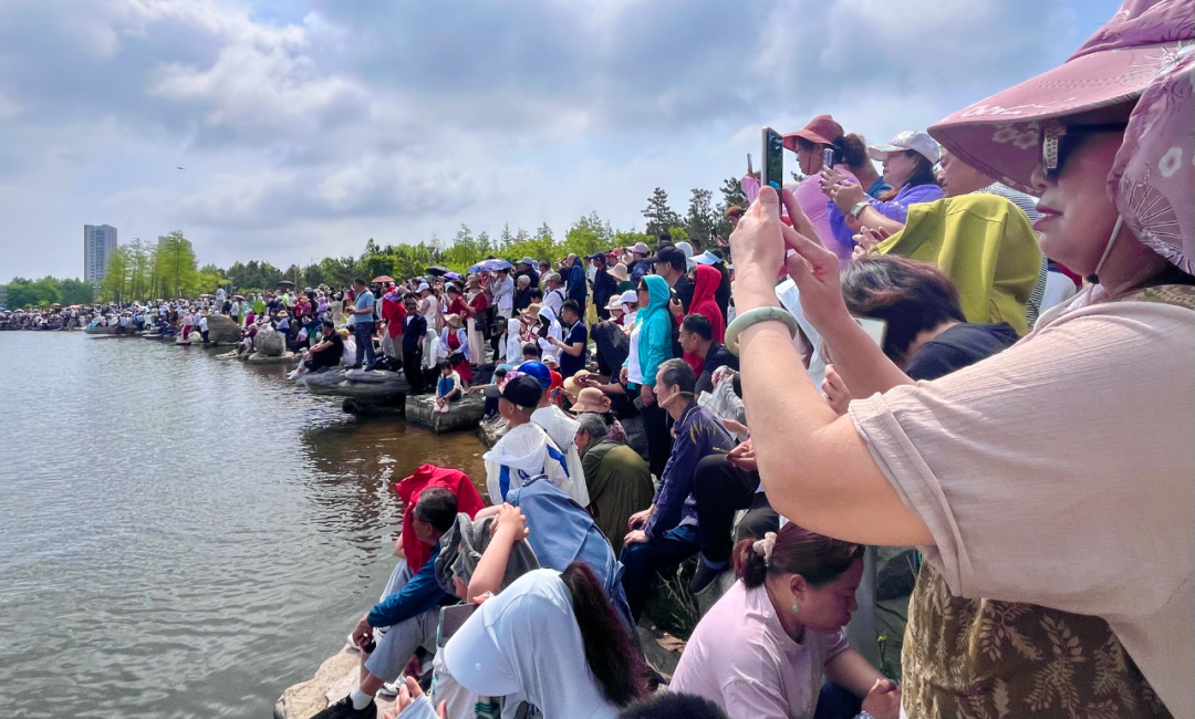 “太精彩了,现场氛围非常好,很热闹。这里风景也很美,趁着端午假期游玩一下,很休闲自在。”游客潘荟竹说。