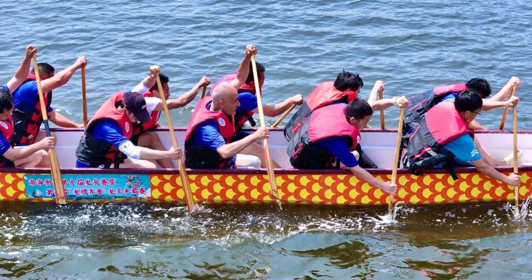 “国际范儿”是南海龙舟赛的一大特点南海新区将生态资源打造成旅游资源连续10年举办龙舟赛成为颇具特色的体育运动项目吸引了不少外籍人士参与