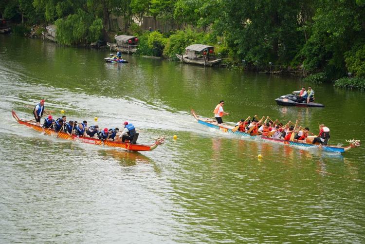 据了解,每年非比赛季期间,景区工作人员需要将龙舟沉入水下保存,到使用时,要对龙舟进行清洗、维修保养、油漆粉刷、晾干,使之重焕光彩,然后才可“下水”。随着龙舟大赛的档次、水平以及可观赏度不断提升,景区更是花费重金更换了新式碳纤维龙舟,免费为各参赛队提供使用。