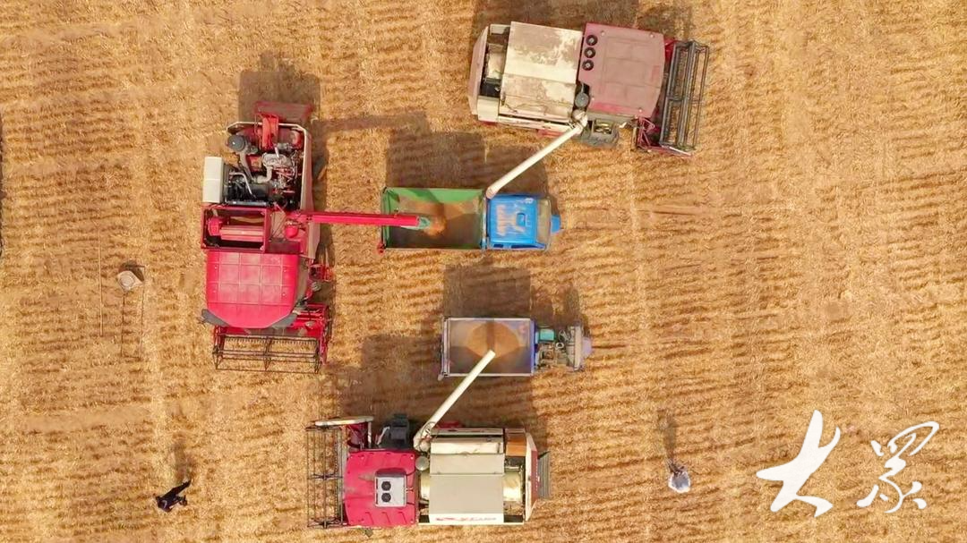 在巨野县龙堌镇文楼村,种粮大户刘高峰抢抓晴好天气,收获小麦,确保颗粒归仓。