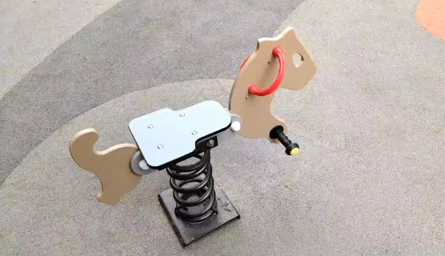 而在儿童活动区,设有多类儿童游乐设施,帮办记者看到了业主们质疑颇多的儿童滑梯,滑梯确实整体体积较小,且材质较为单薄。只见一位业主用手晃动园区内的儿童摇椅,地面却出现了松动的情况。