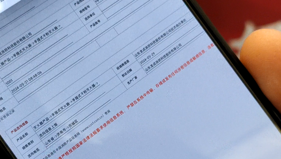 灭火器虽然配了,没想到却出了问题。5月30日,一位业主发现这批灭火器的出厂日期竟然标注着2024年6月,“明明还在5月,却配的是6月出厂的灭火器,我怀疑这可能存在合格证造假的现象。”王昊表示,这一情况引起了业主们对于灭火器安全性的质疑。