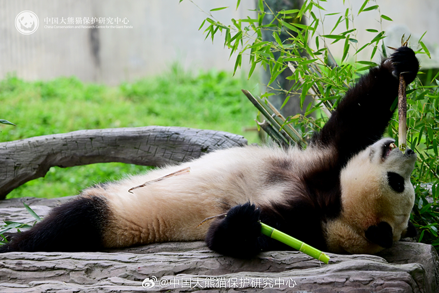 6月12日上午,大熊猫“福宝”在熊猫中心卧龙神树坪基地正式与公众见面。