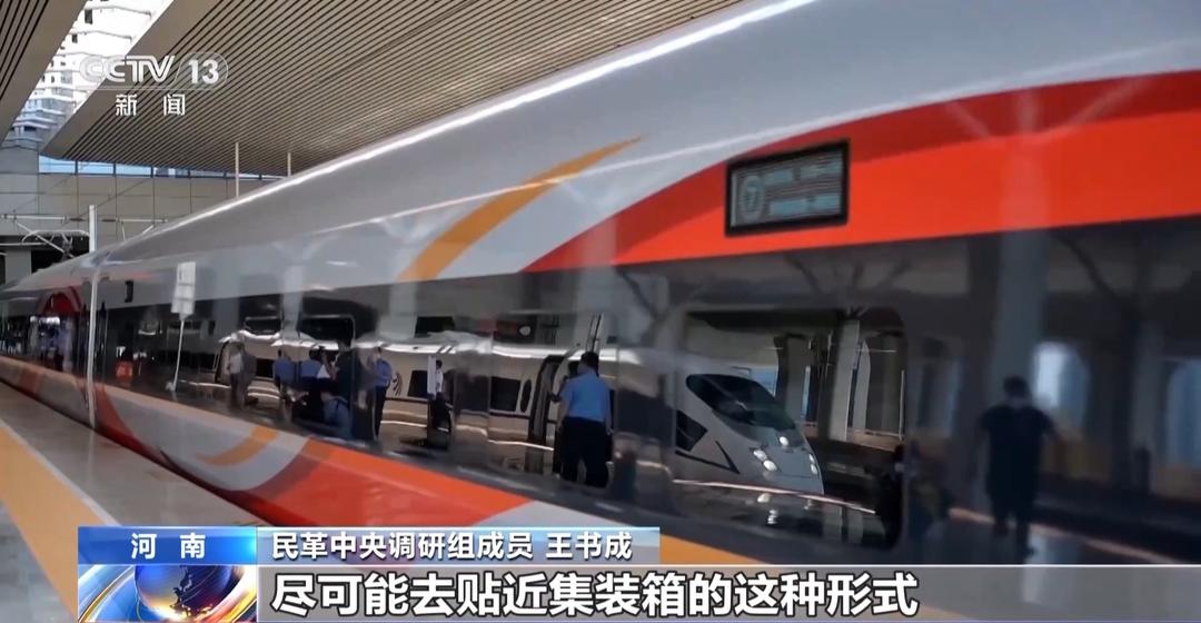民革中央调研组成员 王书成:在研发高铁货运车辆的时候,要跳出客运高铁车辆的思路,尽可能去贴近集装箱的这种形式,来保证车厢能够装的货量更大。货量更大,就能保证平均每件的成本降下来。