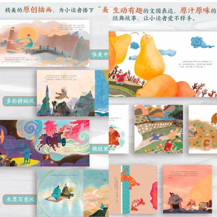 该套绘本大系整体上以中国传统写实风格为基调,吸取中国年画、壁画、剪纸、皮影等艺术风格,基本做到了中国故事与中国艺术的巧妙融合。