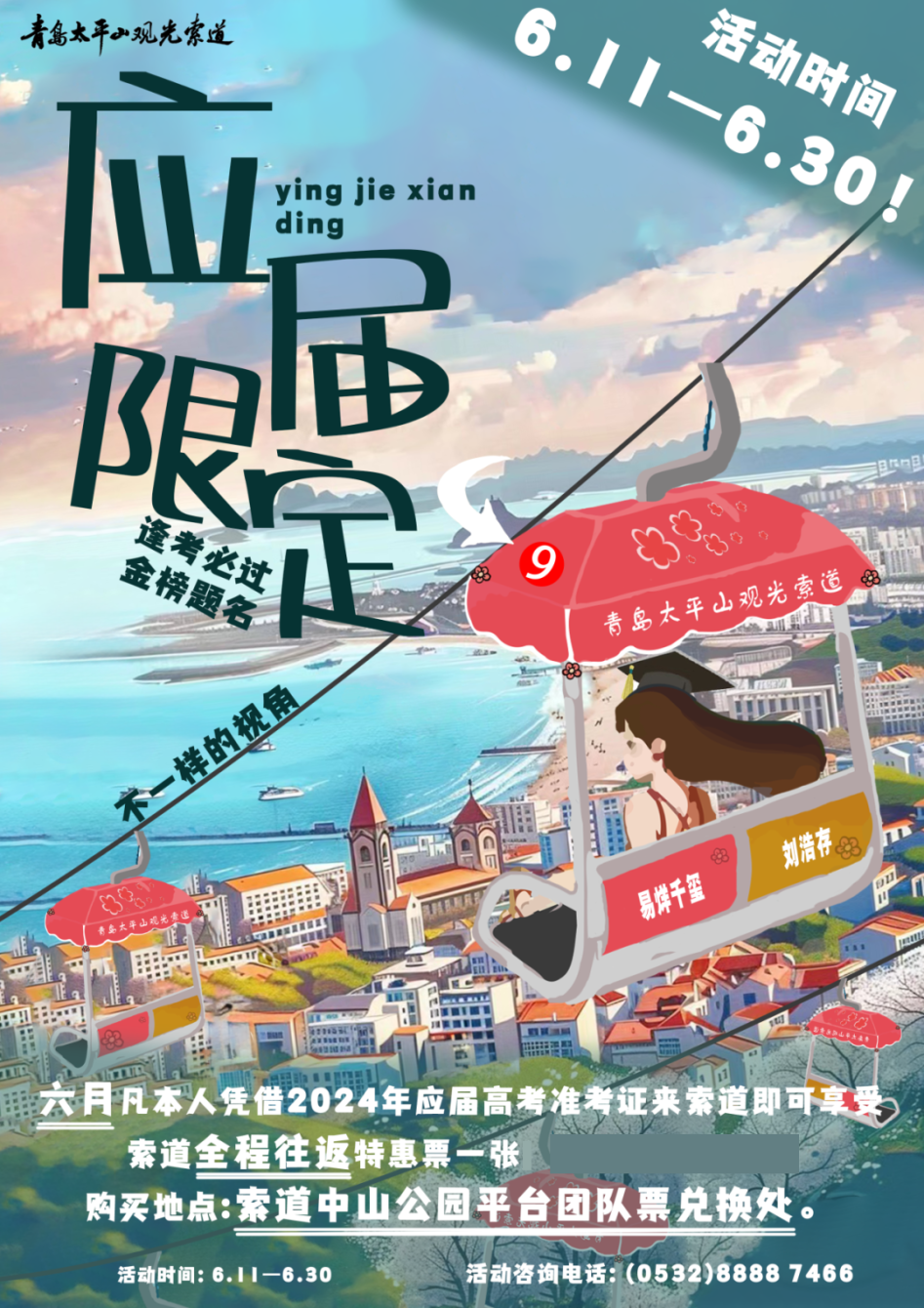 *考生本人凭借2024年高考准考证,即可享受索道全程往返特惠票:100元/人。