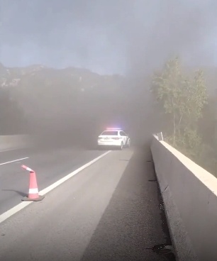 隧道口冒出滚滚浓烟