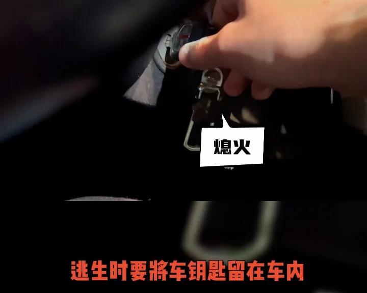 不要拔车钥匙。弃车逃生时,不要把车门关死,最好把钥匙留在车内方便救援人员挪车。