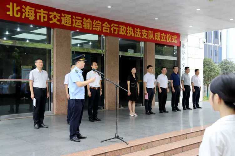 今年5月,北海市交通运输局已举办北海市交通运输综合行政执法支队成立仪式。北海市交通运输局局长李斌施指出,要以本次改革为契机,积极探索队伍建设长效机制,不断提升执法人员的业务素质和综合能力等。