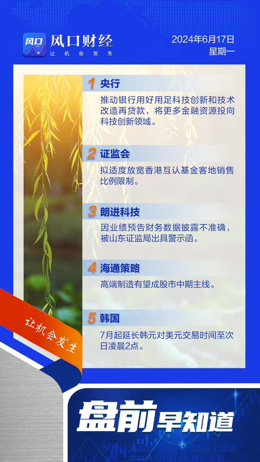 A股盘前:央行发文将更多金融资源投向科技创新领域;朗进科技被出具警示函