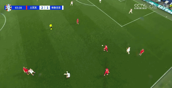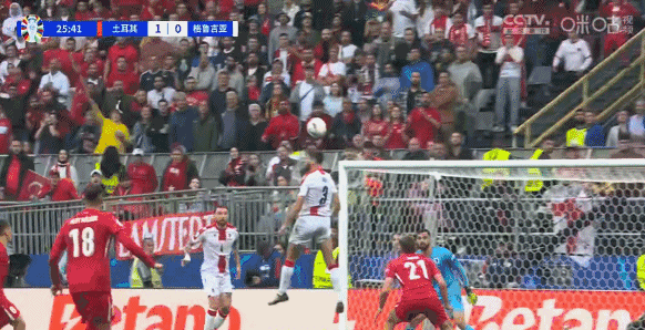 随后双方保持对攻的态势,但都与破门之间有所距离。直到比赛伤停补时最后时刻,落后的格鲁吉亚队获得角球机会,门将也来到前场参与进攻,土耳其队抓住反击机会,阿克图尔科格鲁拿球之后带到前场面对空门轻松推射,帮助土耳其队以3比1锁定胜局。