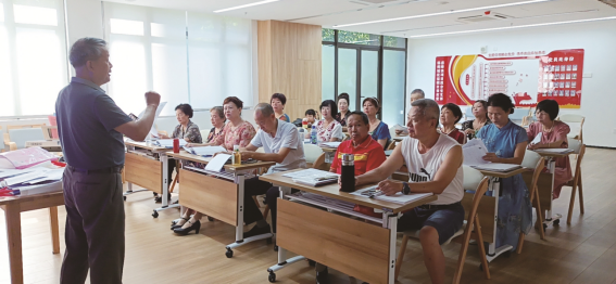 在乐龄学堂,老人们可以加入舞蹈队、歌唱班、旗袍队、乒乓球队等文体团队,参与各种文化、娱乐、教育、体育健身等活动。