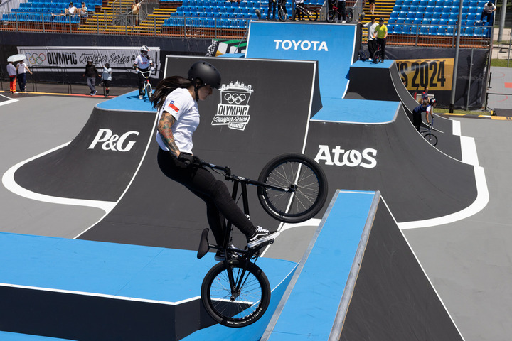5月18日,在上海举行的巴黎奥运会资格系列赛上海站小轮车自由式女子公园赛决赛中,中国选手孙思蓓以95.86分的成绩获得冠军,孙佳琪与邓雅文分别获得亚军和季军。图源:新华社