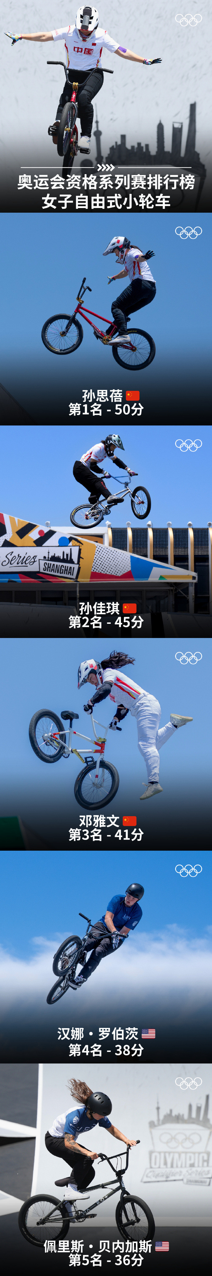 女子自由式小轮车排名 图源:奥林匹克运动会官方微博
