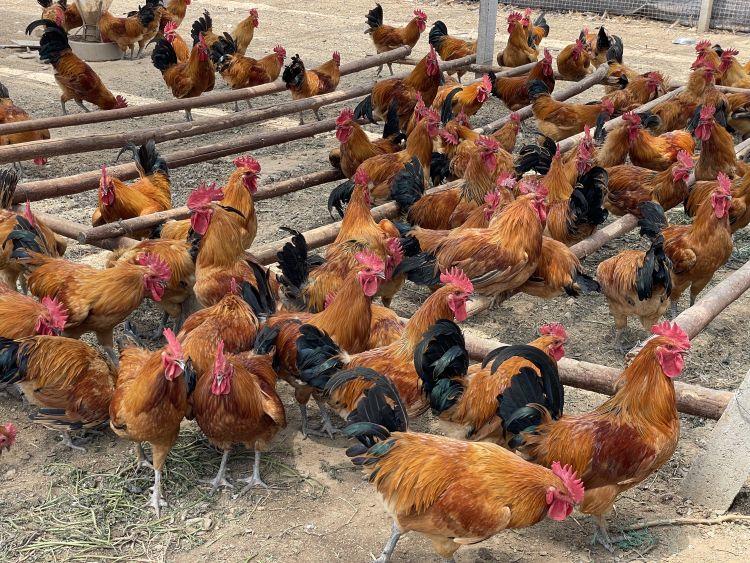2023年冬天,村合作社首批引进1000只“红瑶”大公鸡,在几名种植、养殖专业户的操持下,黄台村的循环农业“初战告捷”。一棚两用,不仅节省了清理大棚藤蔓的人工费,大公鸡也因此长得膘肥体壮。