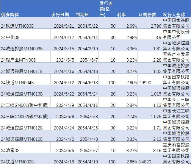 截至6月20日,今年3月以来,已有13只30年期信用债发行,发行主体包括中国国家铁路集团、中国诚通控股集团、长江三峡集团、中国中化股份有限公司等央企国企,以及重庆渝富控股集团、无锡产业发展集团等城投公司。无锡产业发展集团此前6月5日已发行一期30年期中期票据。