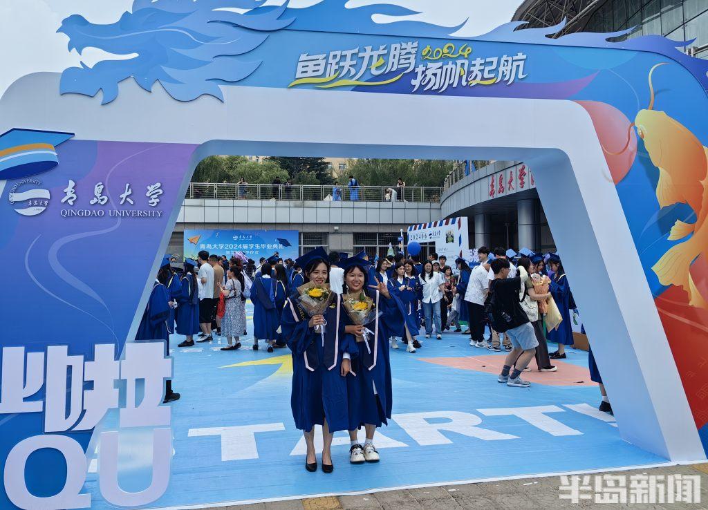青岛大学还在毕业典礼场馆附近设置了毕业小镇,毕业生们在“鱼跃龙门”“青大日历”“青大朋友圈”合影展板前跟家人、老师、恋人、同学、闺蜜等纷纷合影,让温馨和祝福双向奔赴,让未来时光和母校岁月在此温柔交汇。