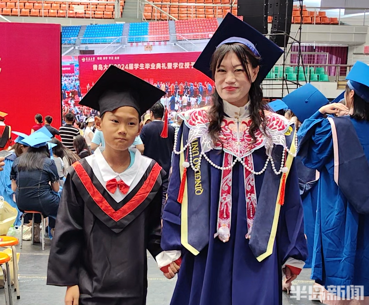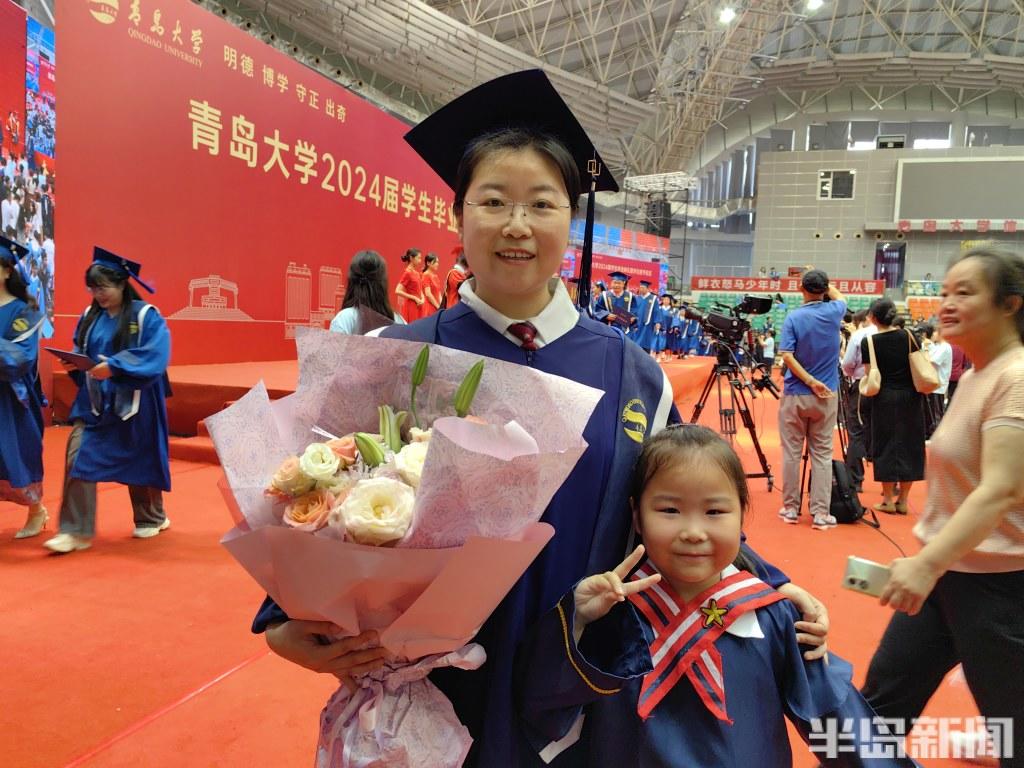记者现场看到,有不少博士妈妈、硕士妈妈带着孩子一起领毕业证书,让孩子也感受这份荣耀。“今年我博士毕业,女儿幼儿园毕业,祝愿以后我们都顺顺利利。”临床医学系博士毕业生王同学牵着女儿的手,满脸喜悦地说。