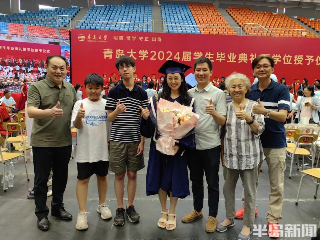 “女儿今天拿到博士学位,非常开心!我就补穿了一下博士服,非常快乐,祝青大越来越好!”顾英豪告诉记者,顾凌雯的妈妈今天在医院有门诊,没能来参加女儿的毕业典礼,女婿是大连理工大学毕业的博士,为庆祝顾凌雯博士毕业,女婿也穿上了自己的博士服,家人亲朋多位博士一起与顾凌雯合影,格外有纪念意义。