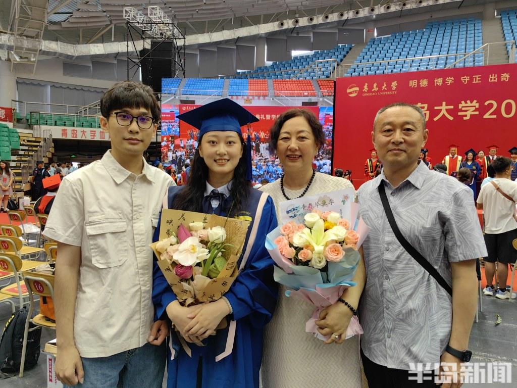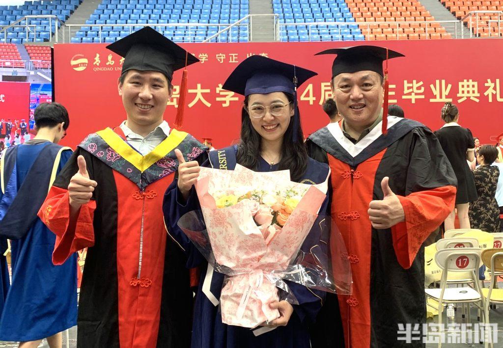 顾凌雯同学在本科和硕士研究生阶段都是在青岛大学医学院就读,后来继续在青大医学院攻读眼科学博士学位。为庆祝她博士毕业,她的父亲顾英豪特意从淄博赶来,顾英豪是淄博市中心医院的一名医生,多年来,他从未停止过学习,同时也为了激励女儿继续读博,他于2015年到青岛大学神经外科学专业攻读博士,并于2018年6月份获得了博士学位,当时他已经51岁。据顾英豪介绍,顾凌雯的爷爷、奶奶、妈妈都是医生,她算是家庭的“医五代”,在家人的影响下,顾凌雯自然而然选择了学医的道路,家人一直鼓励她持续学习。“受到爸爸的鼓励,同时我们都受到了青岛大学这么好的教育、培养,很感恩学校,祝青大越来越好。”顾凌雯也表示,跟爸爸一起参加青大的毕业典礼,非常激动,重新来到青岛大学,感觉这是一种薪火的传承。
