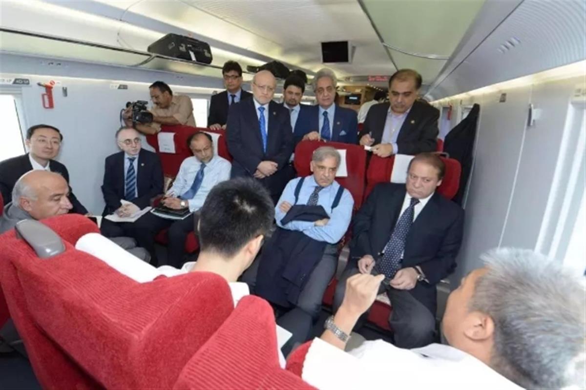 2013年7月,当时刚就任巴基斯坦总理一个月的谢里夫,将海外的第一次访问选在了中国。访华期间,高铁、轨道交通等基础设施建设是他最感兴趣的地方。在当年的7月4日体验了北京地铁后,7月6日,谢里夫乘坐京沪高铁从北京前往上海,亲身体验中国高铁的建设成果。
