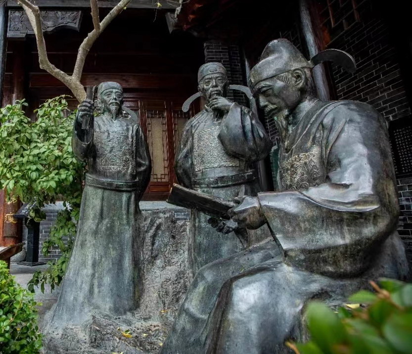 台儿庄古城运河奏疏馆内的“泇河三公”塑像