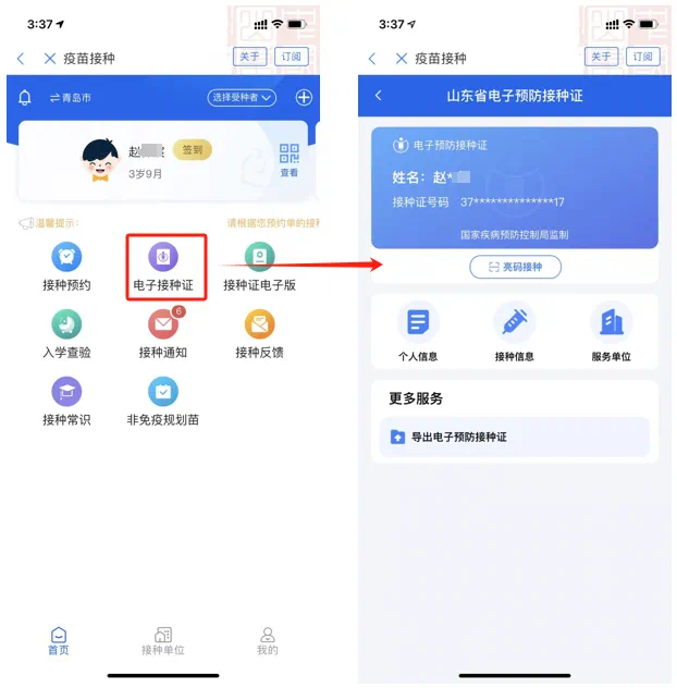 作为山东省电子接种证试点城市,青岛市电子接种证全面上线啦!只需打开手机亮证扫码,即可在预防接种门诊完成登记及疫苗接种。