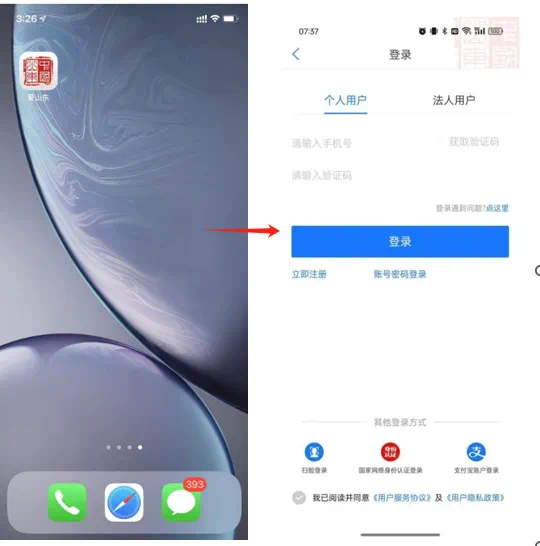 申领人通过手机打开“爱山东”APP,进入个人用户登录界面,输入个人信息进行登录;