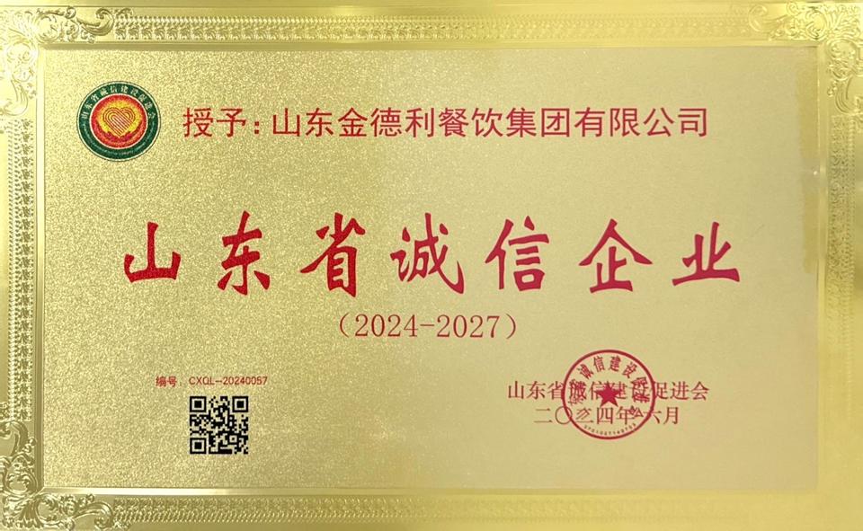 以诚为本,守信致远——山东金德利集团荣获“山东省诚信企业”