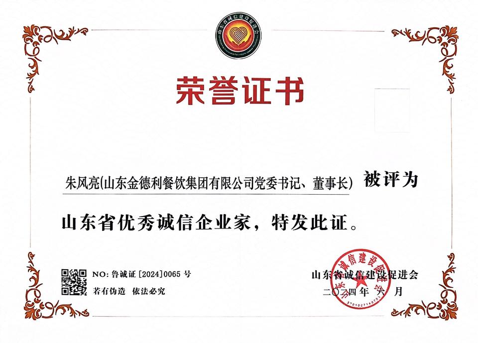 自1992年第一家以“金德利”命名的快餐店在济南成立以来,三十余年中,从“金德利”到“金德利民”,在到如今的“金德利供应链”“金德利团餐”,金德利集团始终坚持以诚信为本,以质量为魂,致力于为客户提供优质的产品和服务。我们深知,诚信是企业发展的基石,是企业壮大的根本。集团始终将诚信作为企业经营的核心价值观,严格遵守法律法规,坚守国企担当,以诚信赢得客户信任,以诚信树立企业形象。