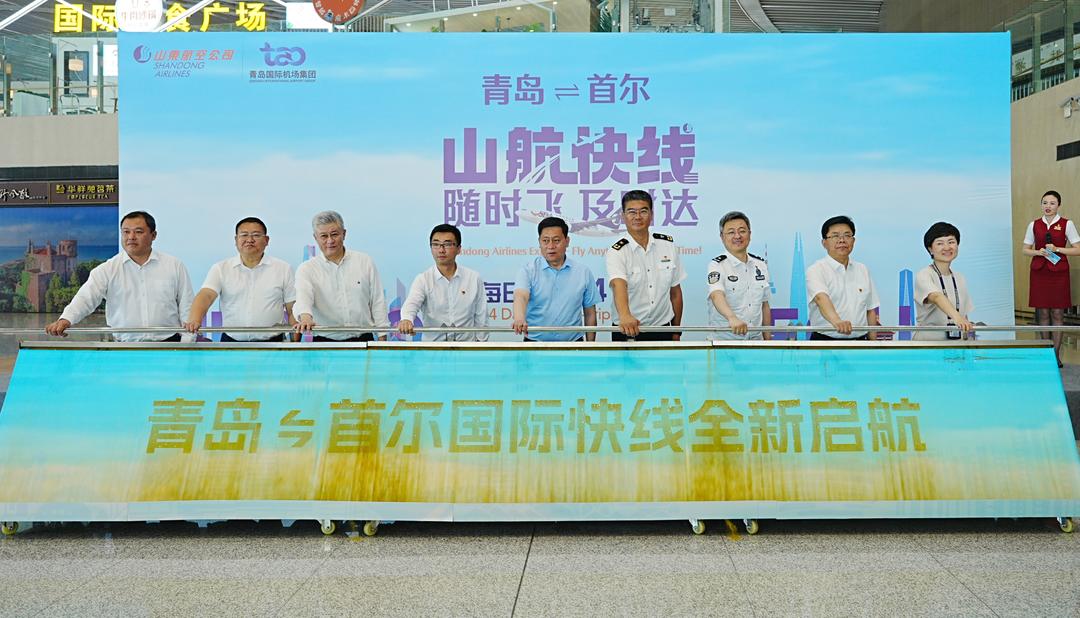 6月28日,山东航空联合青岛机场集团在青岛胶东国际机场举行新闻发布会,宣布青岛出港首条国际航空快线——“青岛=首尔国际快线”正式开通,成为中国通往东北亚的首条国际航空快线,将有力促进山东与韩国首尔两地经济文化交流。