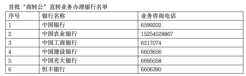 首批“商转公”直转业务办理银行名单: