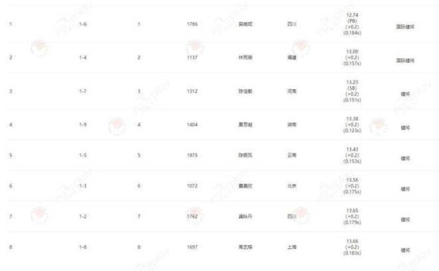 预赛吴艳妮跑出了13秒06的成绩,轻松获得了小组第1名。林雨薇在预赛第2组跑出了13秒26,同样拿到了小组第1。夏思凝在第3组以13秒66的成绩完赛,也获得了一个决赛席位。