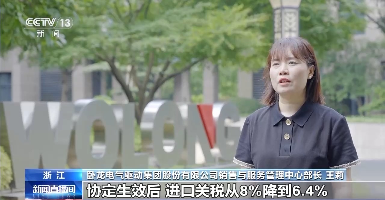 卧龙电气驱动集团股份有限公司销售与服务管理中心部长 王莉:我们公司目前从塞尔维亚主要进口发电机零件。协定生效后,进口关税将从8%降到6.4%,并且在5年内逐步降为0,这对我们来说,实实在在节省了成本。