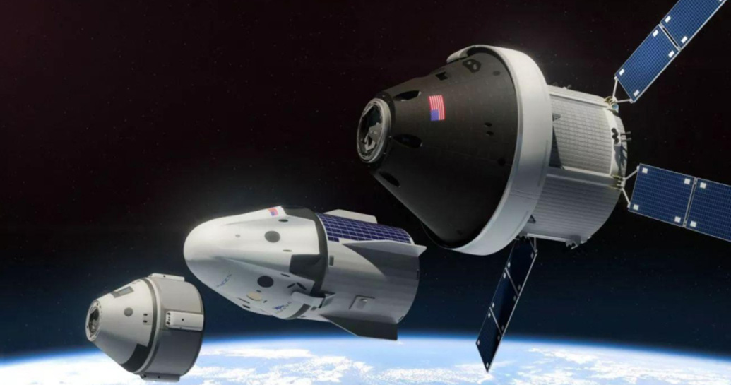 图为美国载人飞船的“三驾马车”:载人“龙”、“星际客机”和“猎户座”