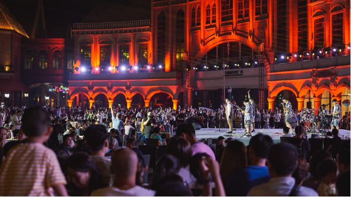 一场融合了光影大秀、乐队狂欢和地道美食的夏日盛宴在小镇广场拉开帷幕。在红树林小镇广场,随着夕阳的缓缓下沉,音乐会正式拉开帷幕。悠扬的旋律在广场上空飘荡,与小镇广场上的啤酒美食节相互映衬,营造出一种别样的浪漫氛围。不仅为市民和游客带来了一场视觉与味蕾的双重享受,更将小镇的夜晚点缀得热闹非凡。 啤酒、烧烤、小龙虾、海鲜大咖、烤肉、东南亚美食等夏日美食一应俱全,让人们在享受美食的同时,也能感受到夏日的热情与活力。同时海边演艺亭前空地被打造成了一个别具一格的海风光影Bar,每晚都有乐队在此演出,为游客们带来了一场场精彩的视听盛宴。