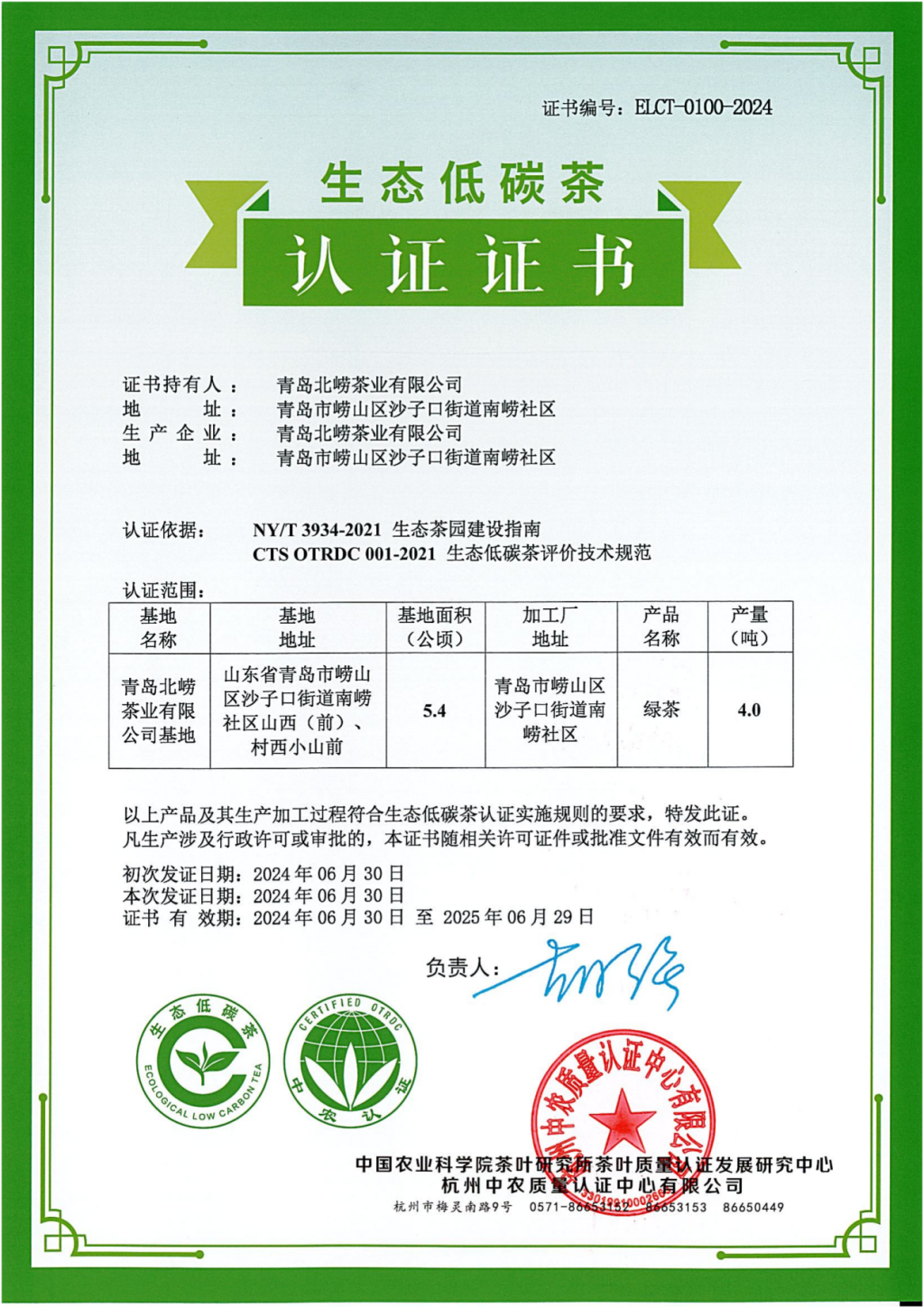 6月30日,崂山区青岛碧海蓝田生态农业有限公司和青岛北崂茶业有限公司的产品获得青岛市首批生态低碳茶认证。崂山茶产业核心竞争力再增加。