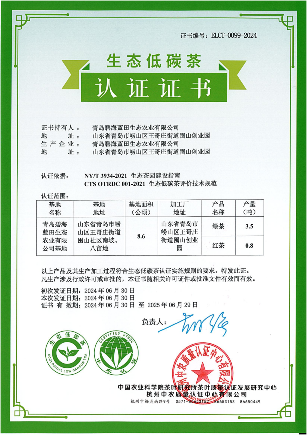 为切实推进崂山茶产业绿色高质量发展,增加崂山茶产业核心竞争力,根据农业农村部《生态低碳茶评价技术规范》相关要求,2023年以来,崂山区农业农村局组织指导企业开展生态低碳茶认证工作,邀请中国农业科学院茶叶研究所和认证机构相关专家到崂山区实地指导。6月30日,崂山区青岛碧海蓝田生态农业有限公司和青岛北崂茶业有限公司的产品获得青岛市首家生态低碳茶认证。