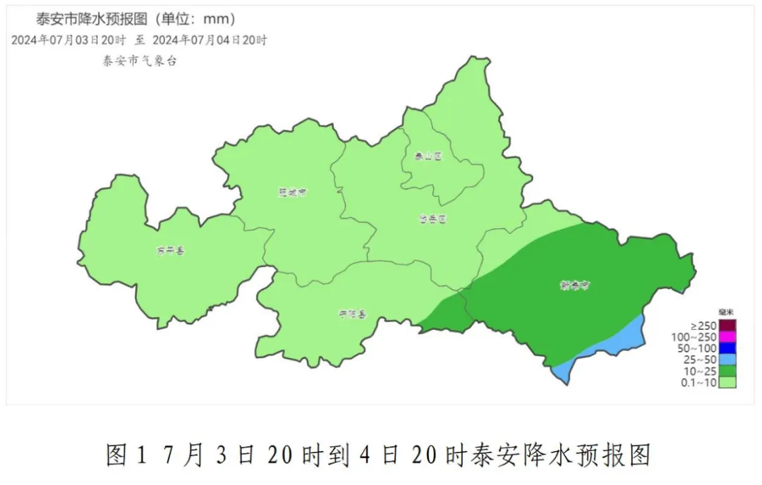 预计3日夜间到4日白天,泰安市多云转阴有雷雨或阵雨(1~10毫米,局部25~50毫米),其中新泰中雨局部大雨(图1)。