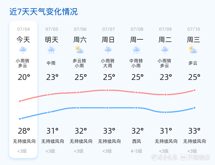 未来三天,菏泽市将持续受到降雨天气的影响。周六至周日,天气由多云转为小雨再转大雨,气温逐步攀升至33℃。市民朋友们需做好防雨措施,并关注降雨可能引发的城市内涝、道路积水等问题。周一将出现中雨转小雨的天气,风力加大至4-5级,市民出行需注意防范风雨交加的天气带来的不便。