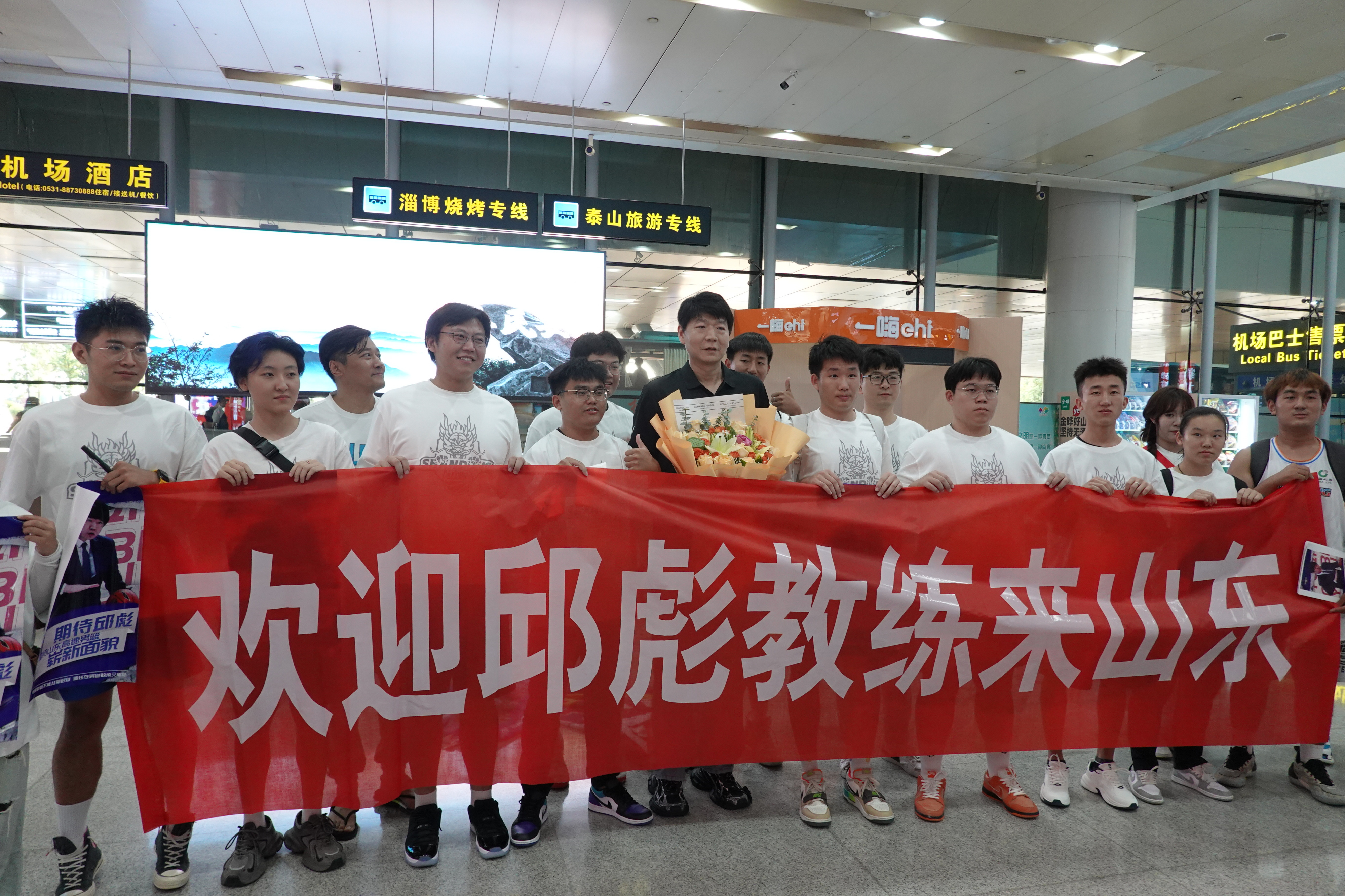 7月4日18时,山东高速男篮新任主教练邱彪所乘坐的航班抵达济南遥墙国际机场。