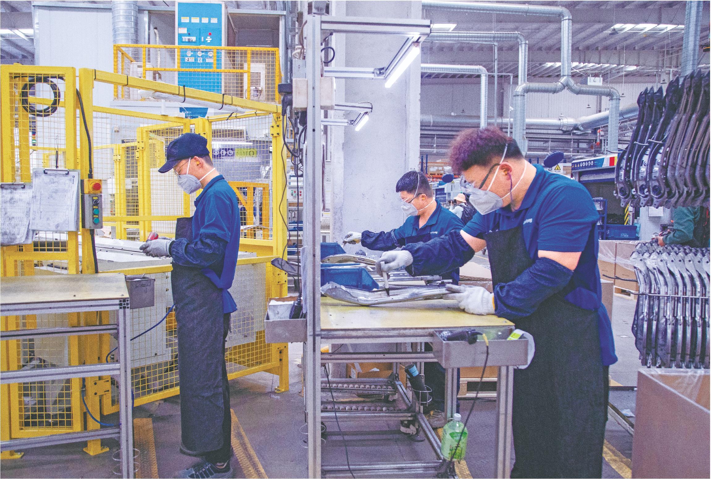延锋(烟台)座椅系统有限公司每小时可以生产65辆汽车配套座椅(5—7座)。图为延锋(烟台)座椅生产车间一角。