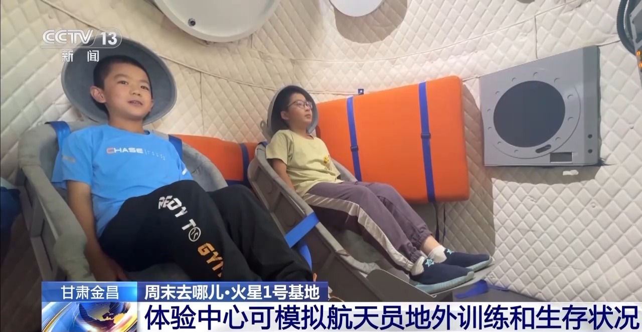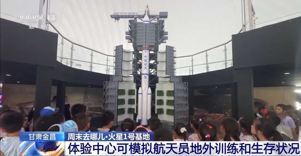 总台记者 王妍:穿上航天服来火星1号基地打卡,是眼下景区最热门的玩法,这里有“火星探测器”“火星车”“航天员装备”,主打一个体验感满满。这里的茫茫戈壁、火红岩体和险峻山脉都酷似火星地表,被游客赞为“地球上最像火星的地方”。
