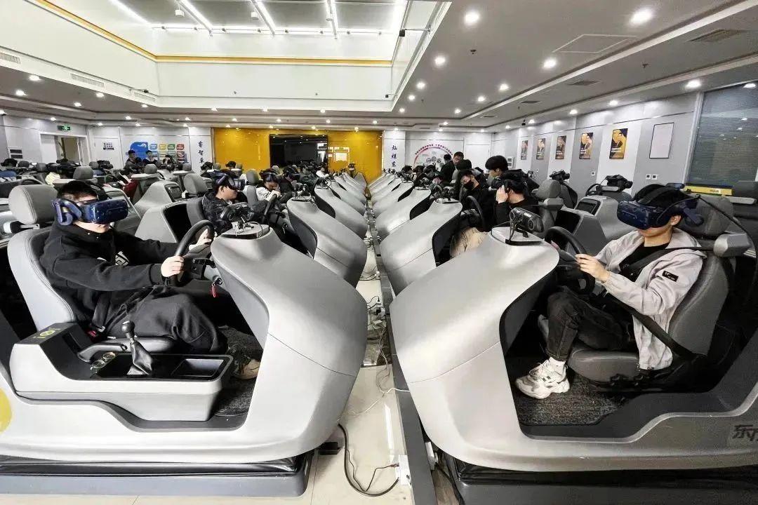 在东方时尚驾校,每个学员在练习科目二之前,都要先使用室内VR模拟车系统上手。