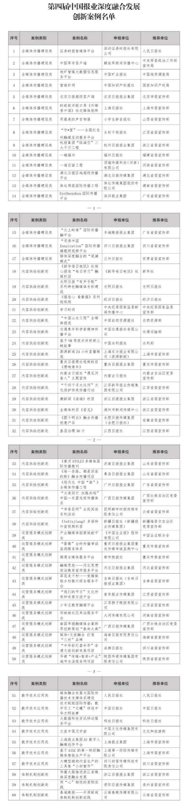 7月1日,国家新闻出版署公布第四届中国报业深度融合发展创新案例名单,60个创新案例入选。