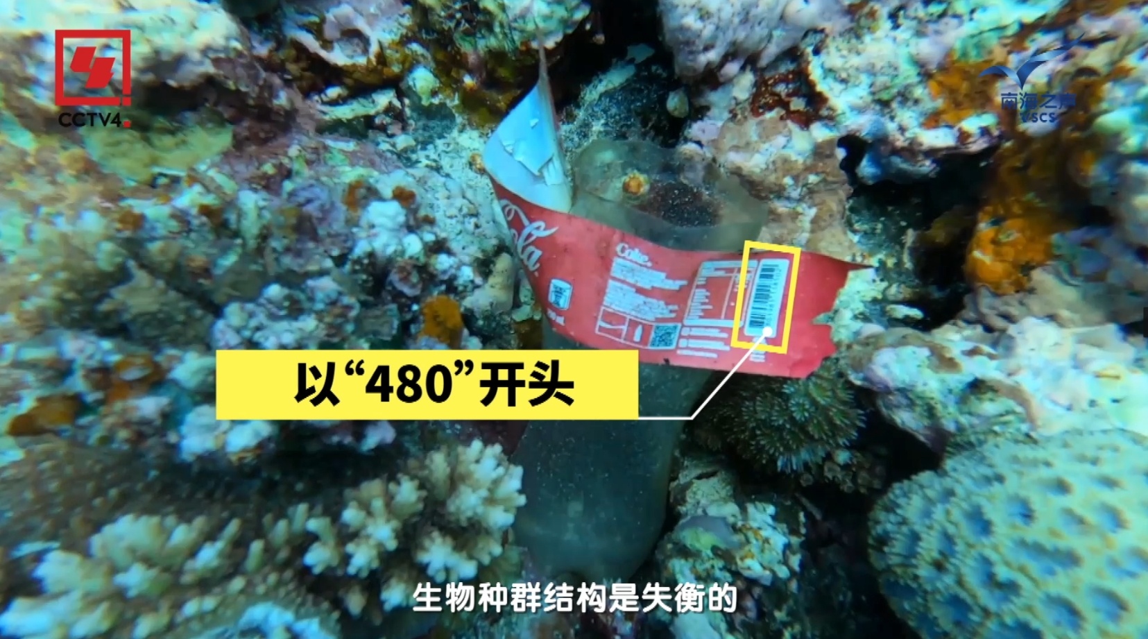 △现场发现以“480” 开头的疑似产自菲律宾的塑料垃圾